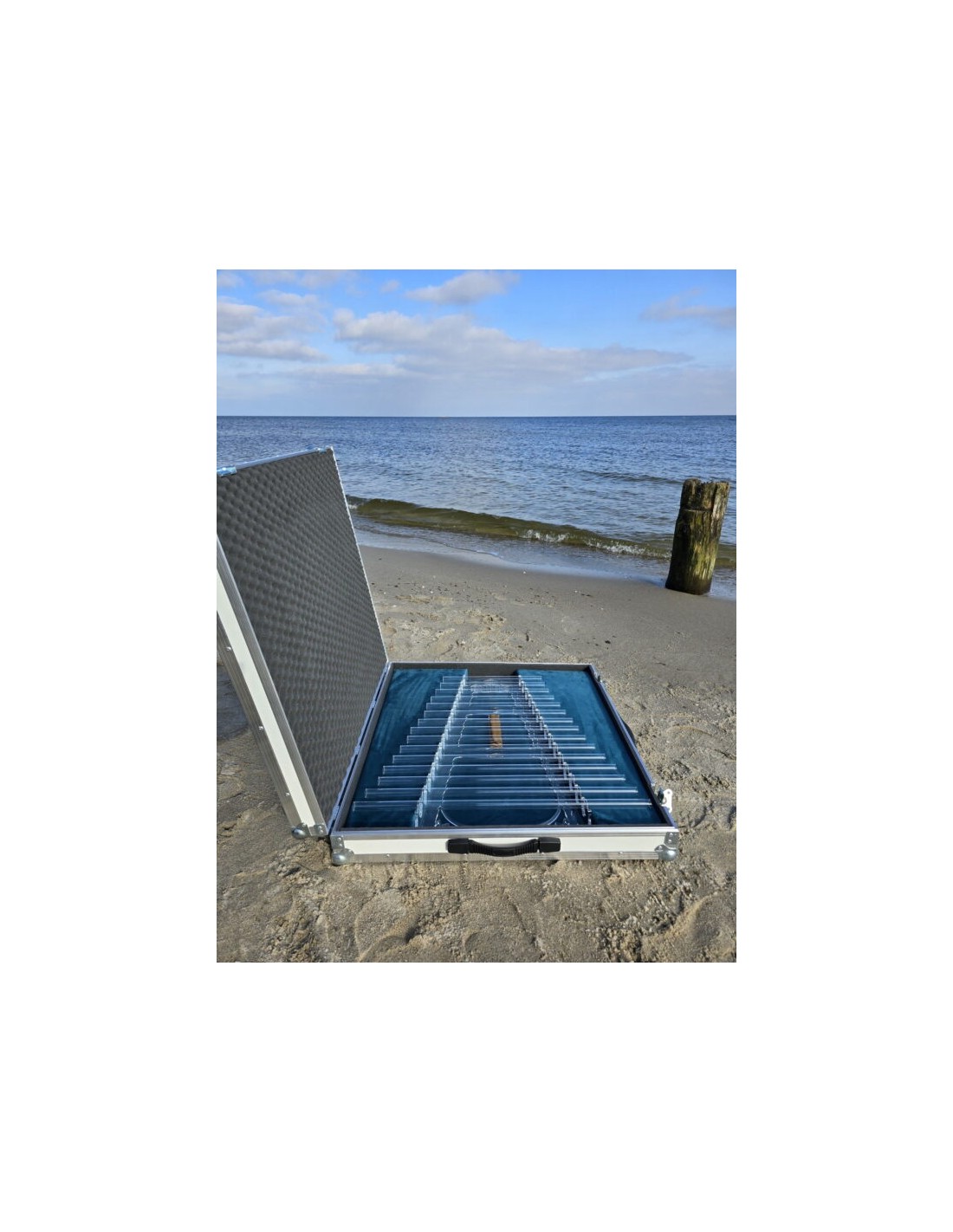 – Maleta rígida con forro interior de terciopelo turquesa.