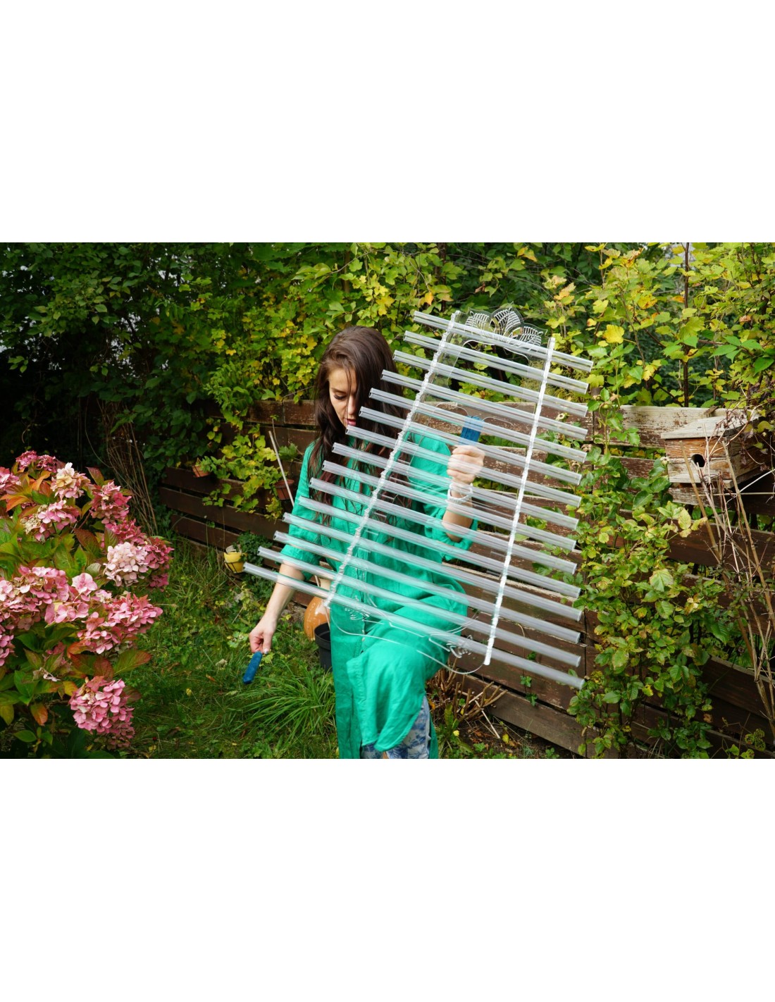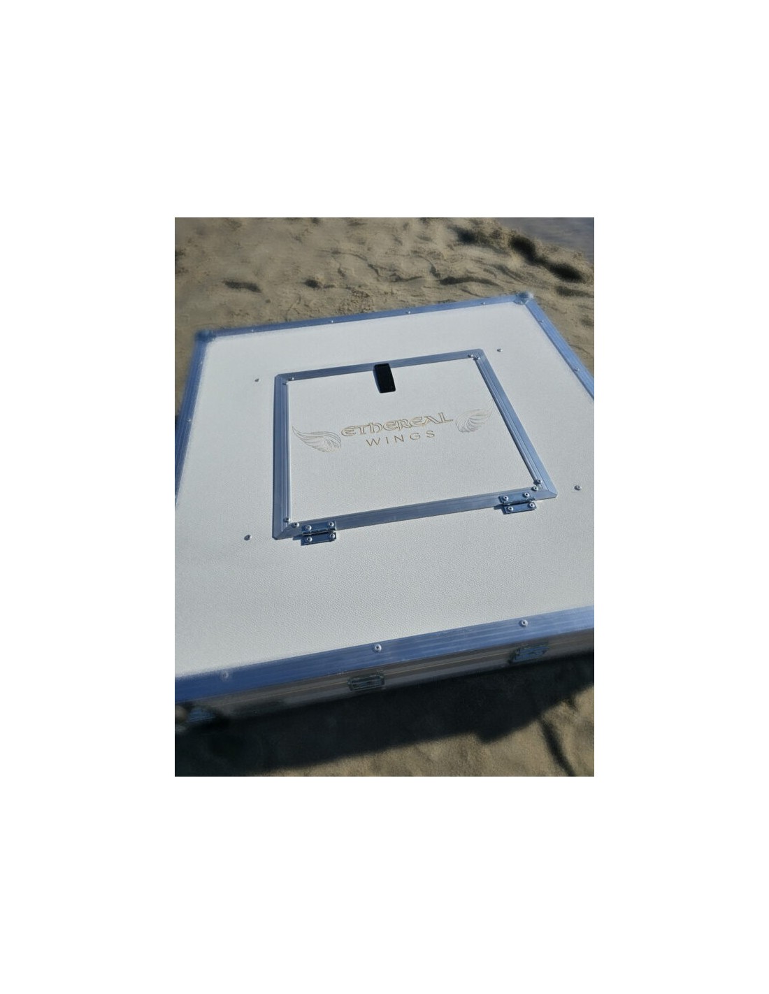 Este instrumento es completamente transparente. El cuerpo está hecho de acrílico y todos los elementos adicionales permiten el paso de la luz, lo que lo hace más etéreo. Los 15 tubos melódicos están hechos de cristal de cuarzo puro.