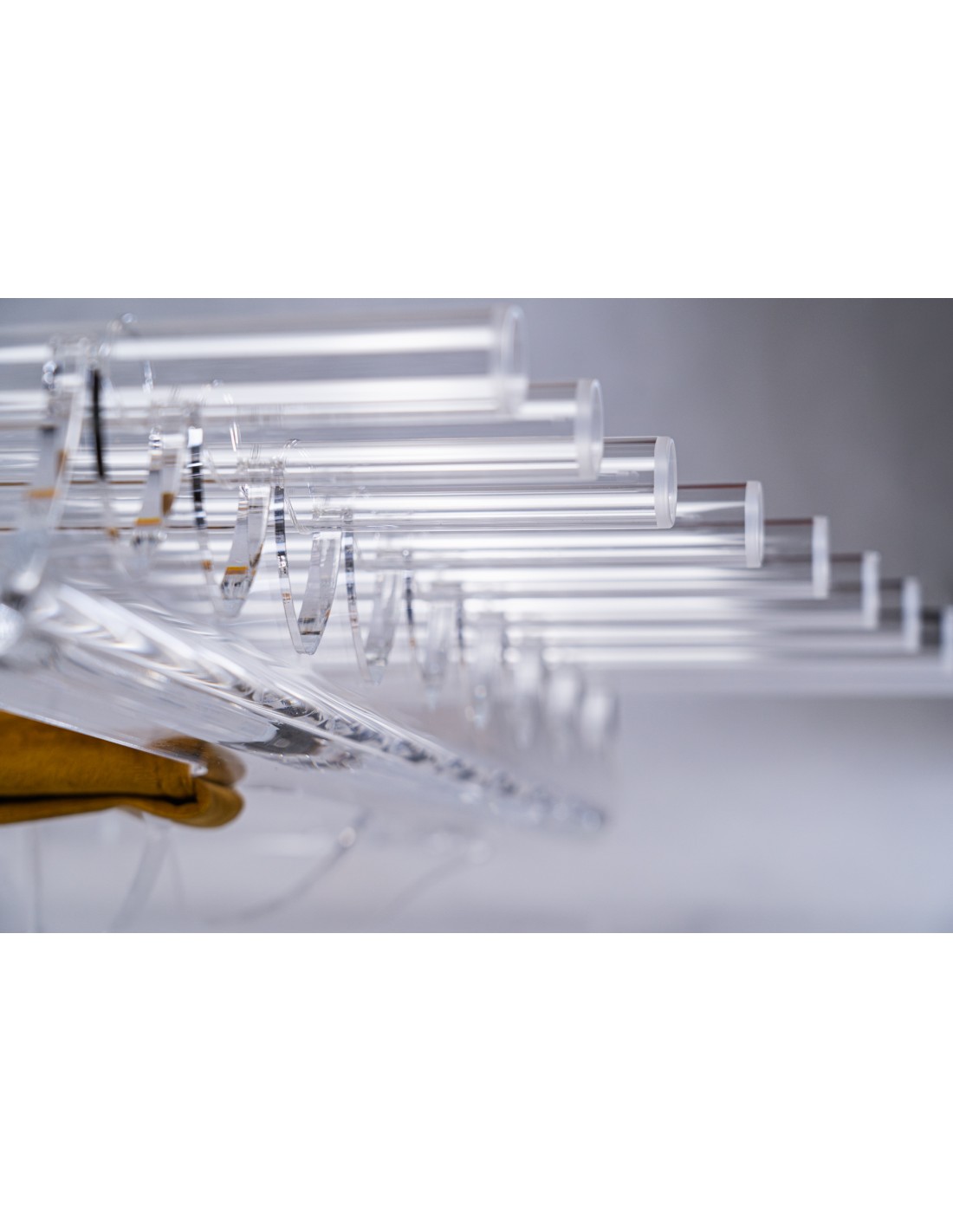 Los tubos están hechos de cristal de cuarzo con una pureza del 99,8 %. Por esta razón, conserva la calidad acústica de los cuencos de cristal, pero suena de una manera completamente nueva.
