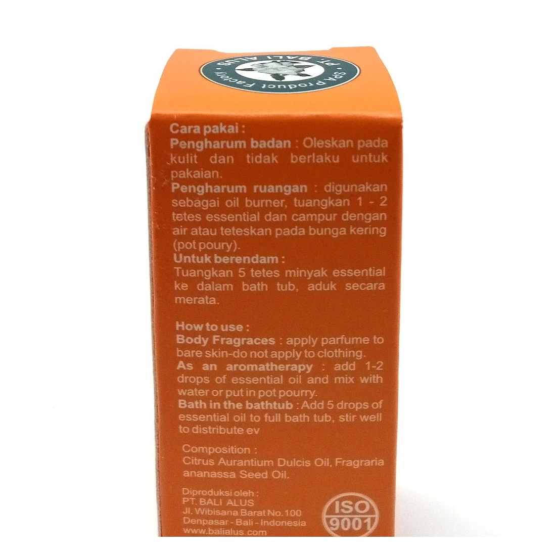 Presentación de aceite esencial obtenido a partir de cítricos.