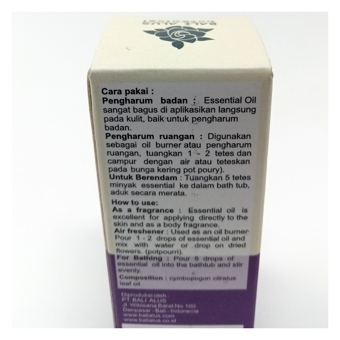 Presentación de aceite esencial obtenido a partir de Citronela