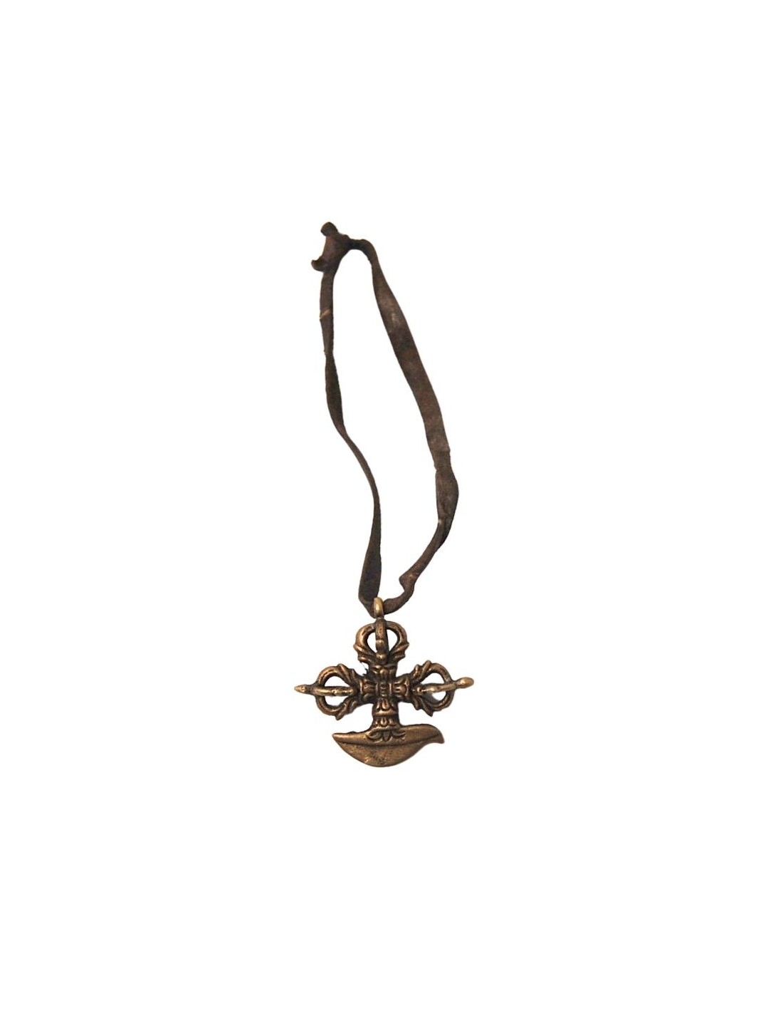 Colgante de metal que representa un "Chikrug", parte hacha y parte doble dorje.