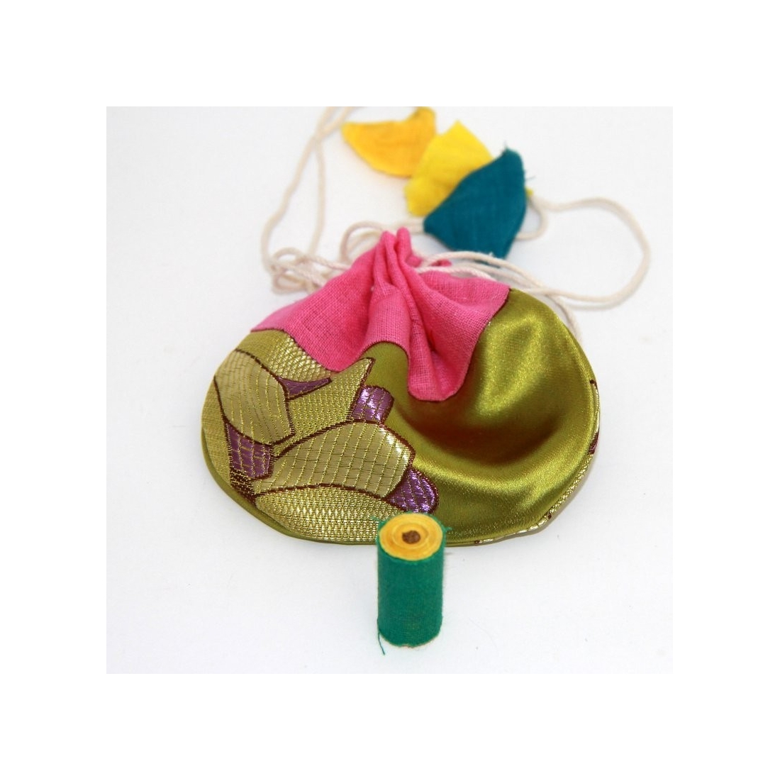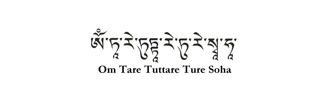 Rollo de papel sellado con tela con el mantra de Tara verde. Se acompaña de bolsita de seda (diversos diseños y colores)
