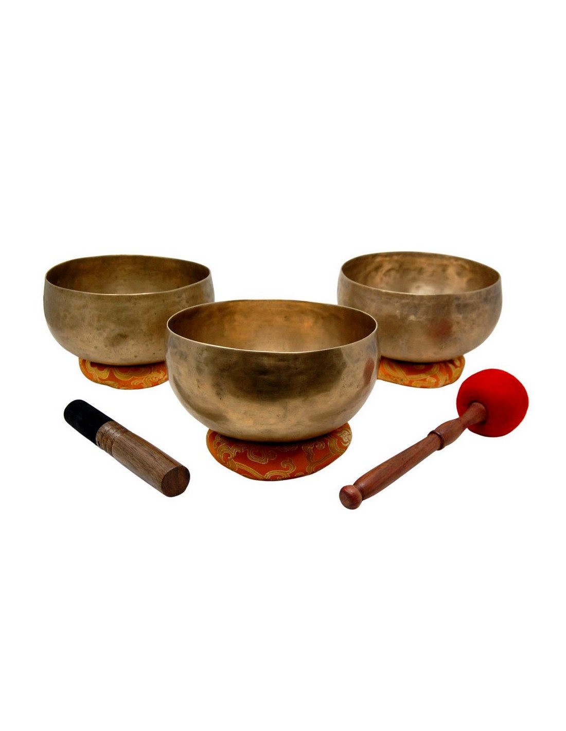 Trío de cuencos koprepatti antiguos que permiten obtener las combinaciones de ondas binaurales Alpha y Theta entre sí, permitiendo con tan sólo 3 cuencos obtener el resultado para el que necesitábamos 4 cuencos: