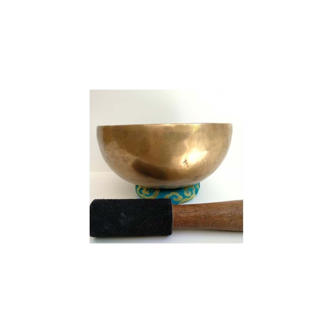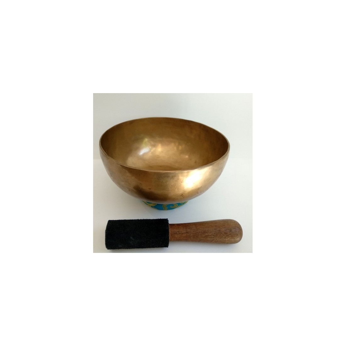 Cuenco tibetano realizado artesanalmente en aleaciones de diversos metales que le confieren una bella combinación de armónicos. Se acompaña de baqueta de madera y fieltro para obtener el máximo rendimiento a su sonoridad.