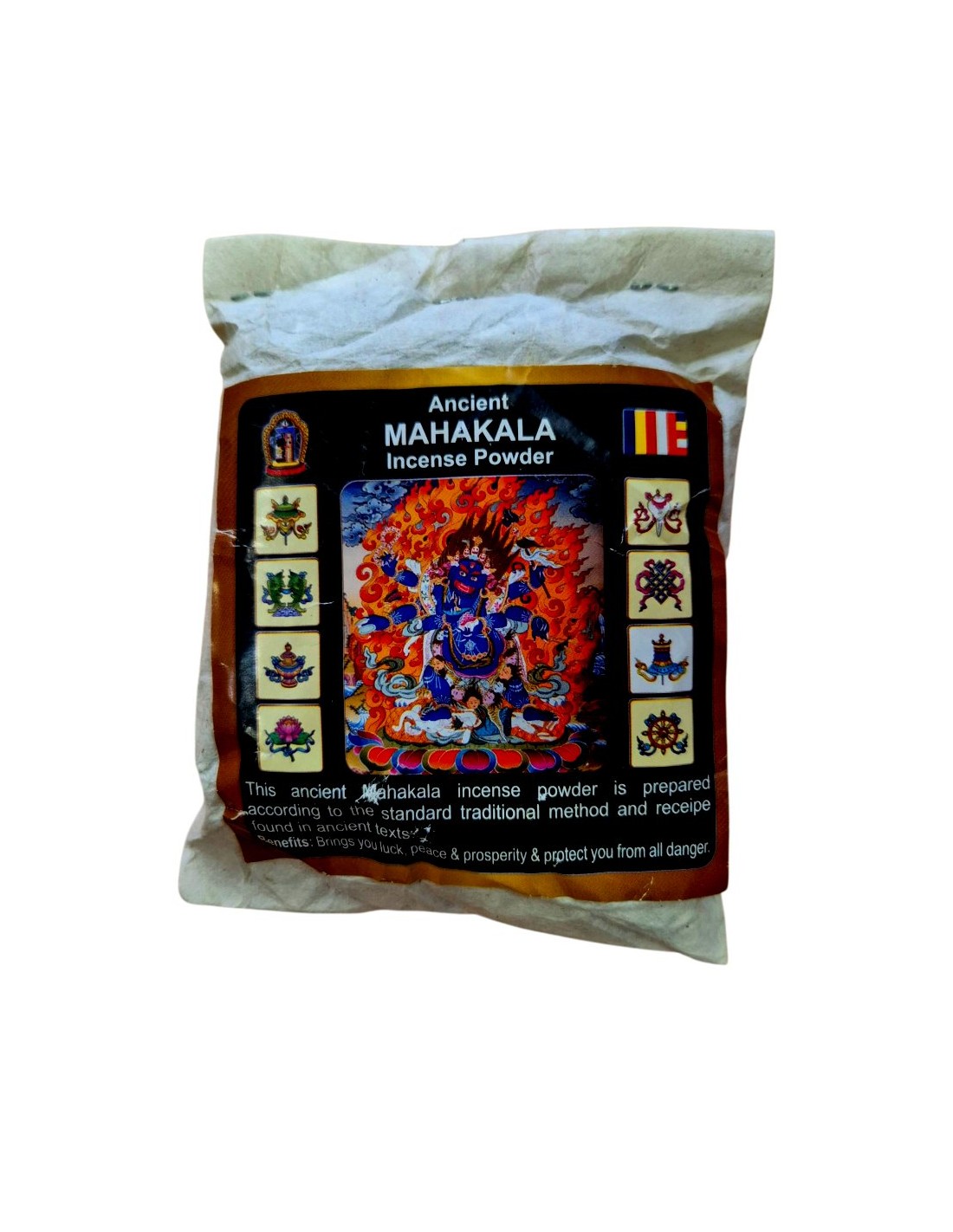 El incienso "Mahakala" se elabora según los principios descritos en el texto tántrico Kavavira, a través de la la combinación de plantas medicinales con diferentes propósitos para la salud y el bienestar también de nuestro entorno. Son 100% naturales y de la mejor calidad. De acuerdo a las escrituras del Budismo tántrico, estos inciensos promueven un proceso de purificación y relajación y eliminan molestas energías que pueden estar ocupando nuestro entorno de vida o trabajo. Los ingredientes de estos inciensos provienen de hierbas y plantas "sagradas", de acuerdo al Budismo. Se realiza una recolecta ecológica y las plantas se secan y procesan de un modo tradicional. Estos inciensos se pueden usar en rituales de sacrificio y pùrificación o durante la práctica del yoga o meditación.