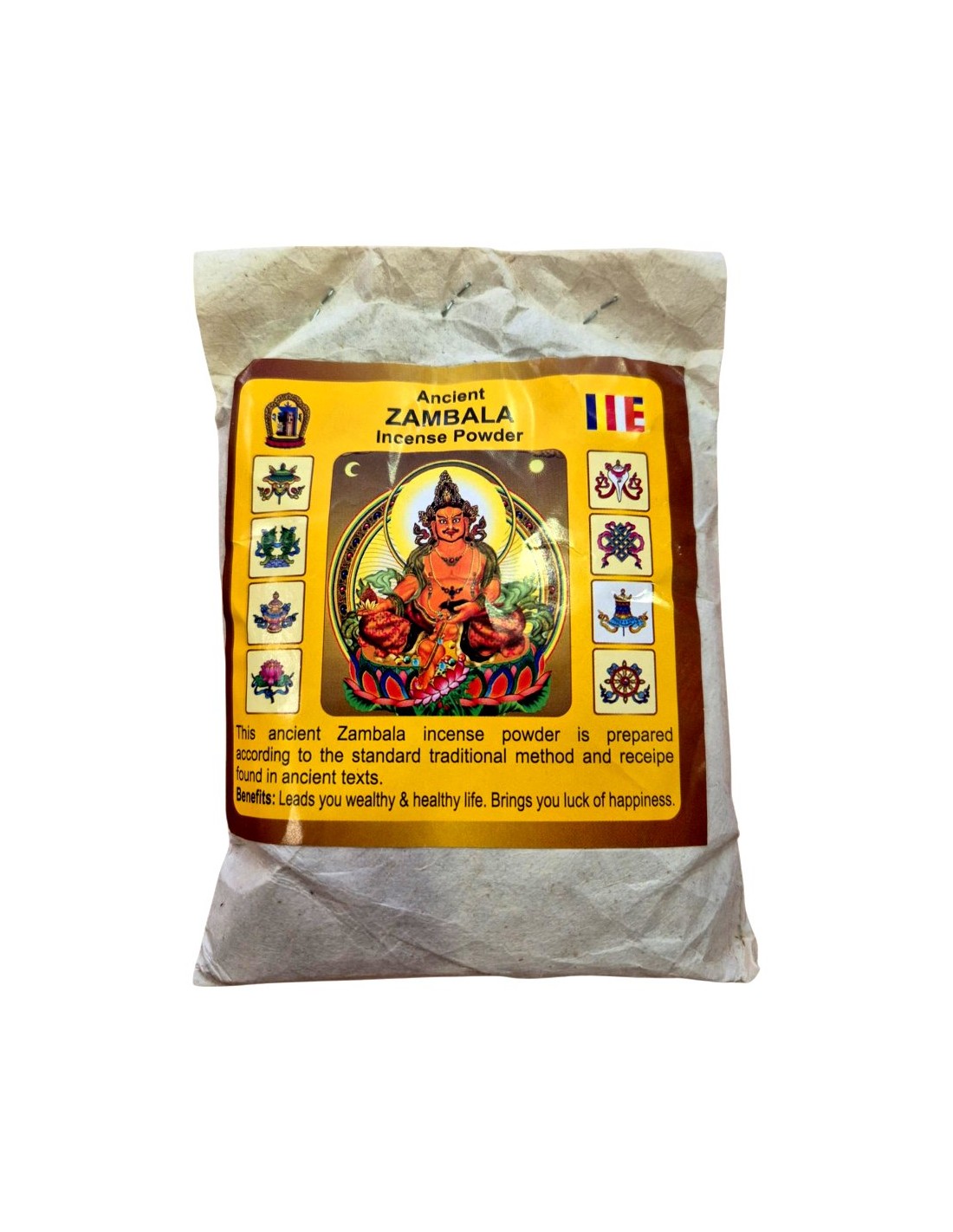 El incienso en polvo Zambala es una mezcla tradicional tibetana utilizada principalmente como ofrenda al Buda de la Riqueza (Zambala) para atraer prosperidad, abundancia, buena suerte y felicidad. Compuesto por hierbas medicinales y aromáticas, sirve para limpiar, purificar espacios de energías negativas y fomentar el bienestar espiritual y mental.