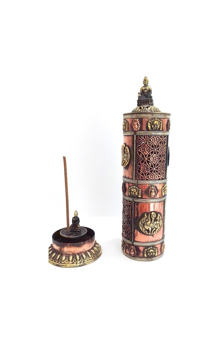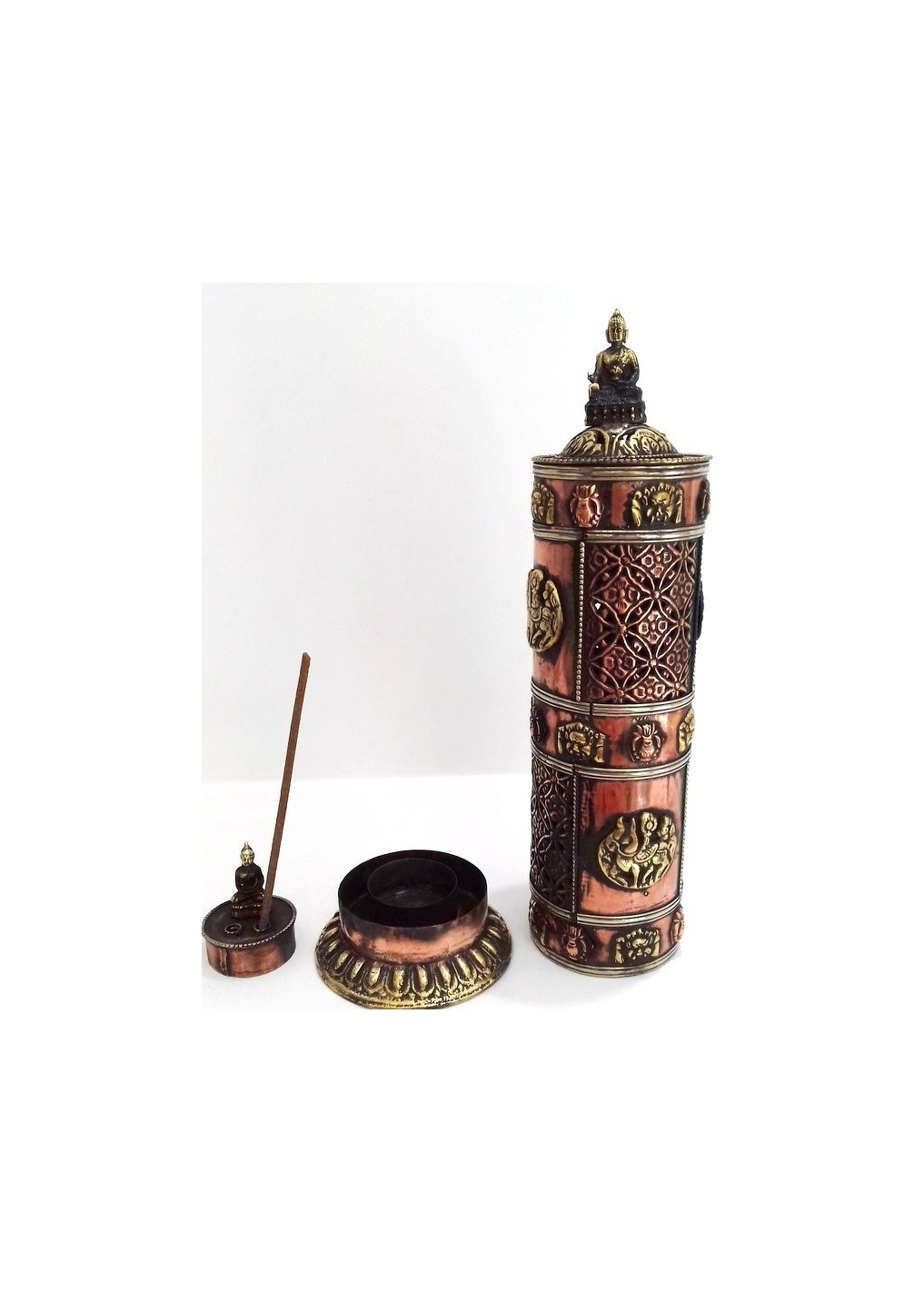 Incensario torre de cobre con Buda