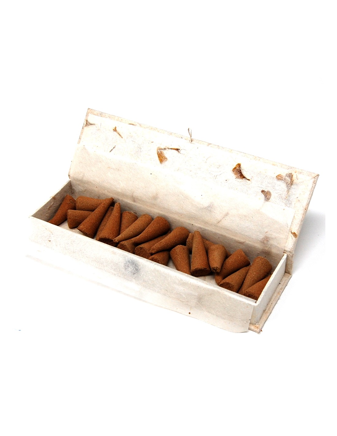 - Caja de incienso elaborada a mano en Lockta (papel natural de cascara de arroz) con 21 conos de incienso natural con aroma de sándalo.