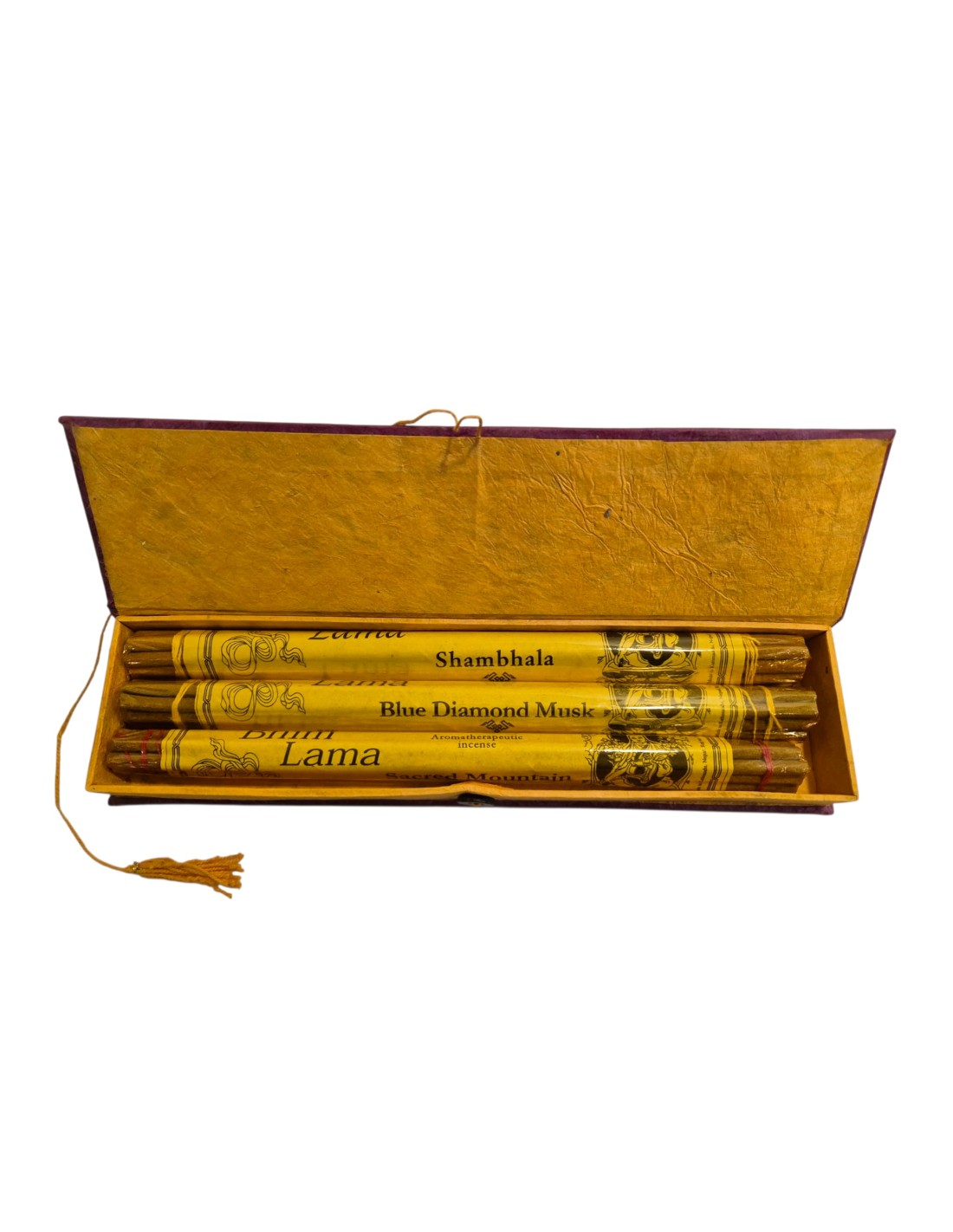 Incienso tibetano elaborado a base de maderas y plantas de un modo natural y ecológico. Incienso ofrecido a "Amitabha" para una vida pacífica y saludable.