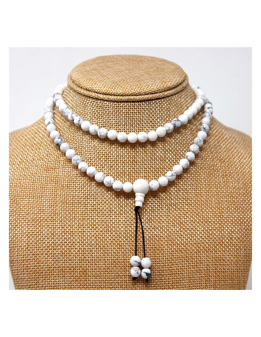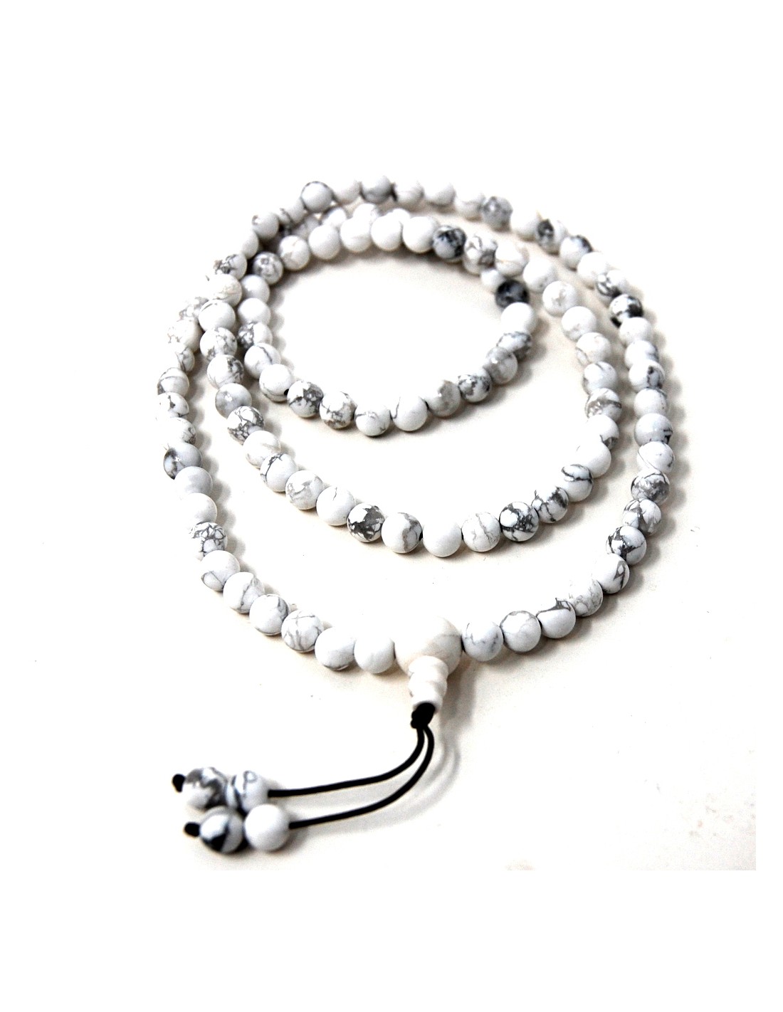 Japamala de 108 cuentas realizada en Howlita blanca.
