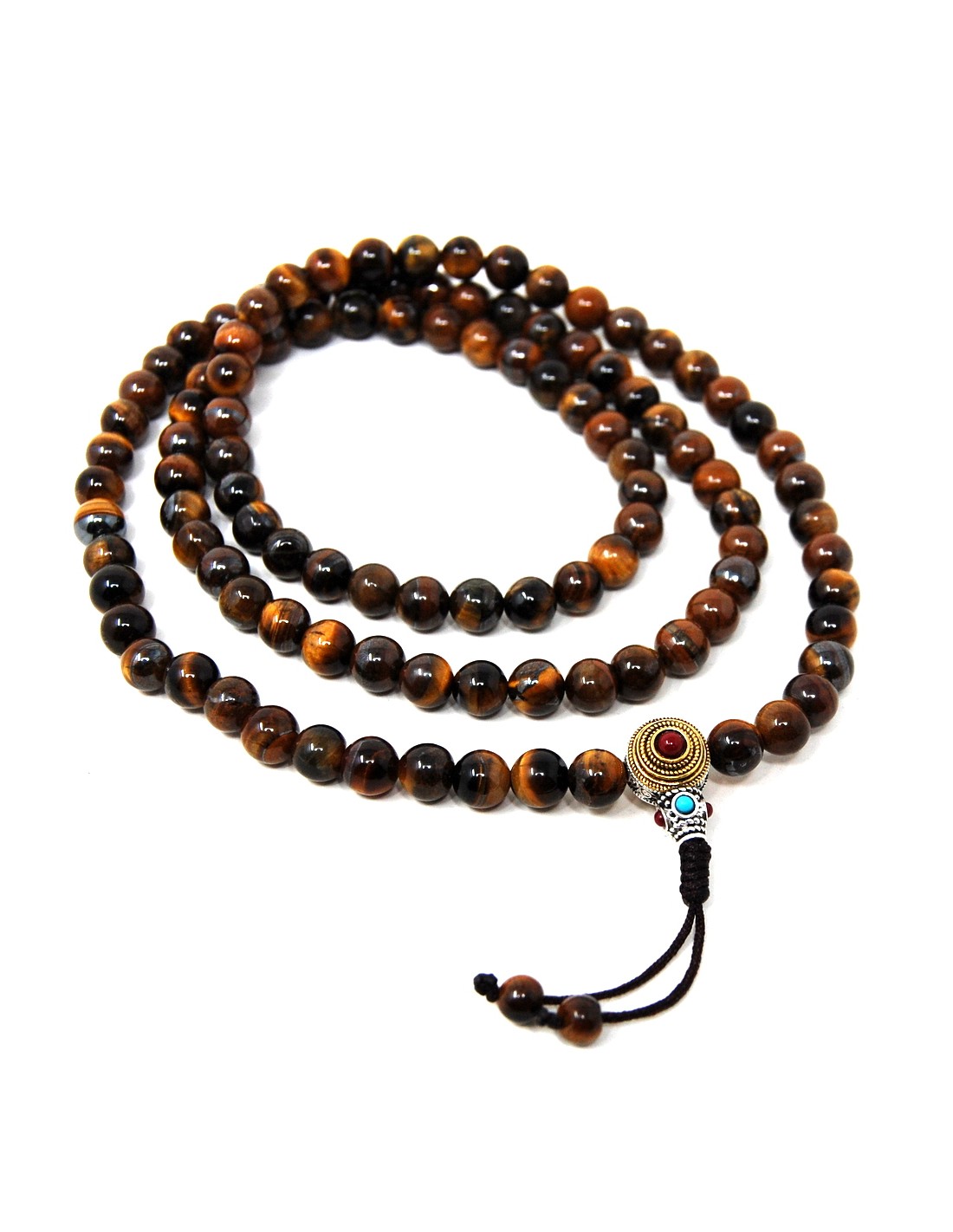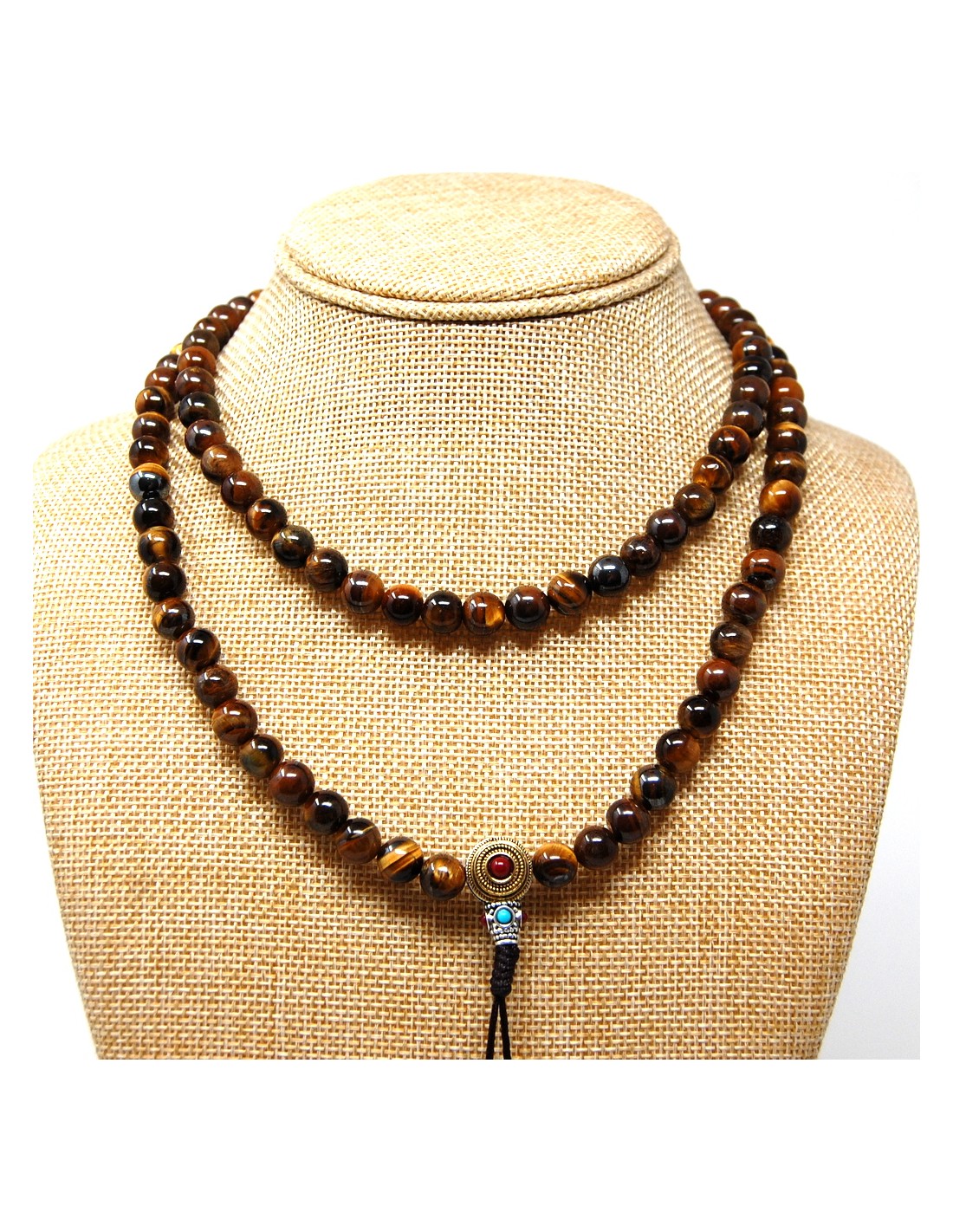 Japamala de Ojo de Tigre con cierre modelo "princess", que permite ajustar la tensión de las cuentas.
