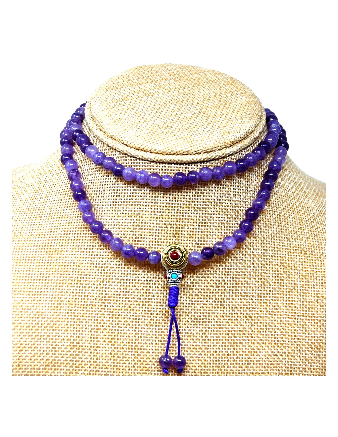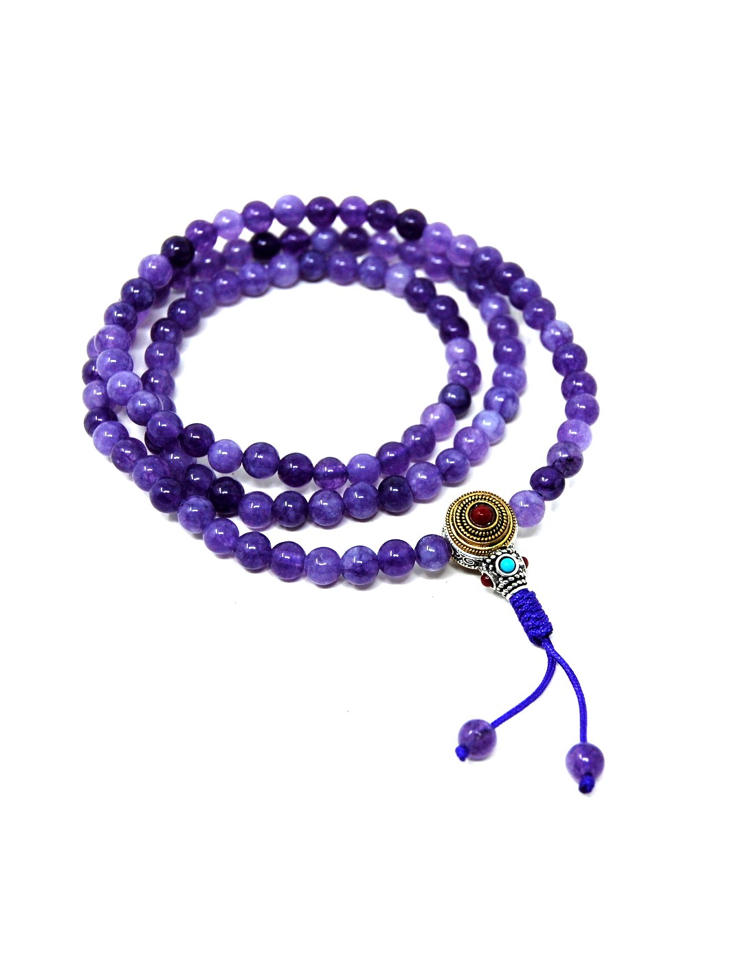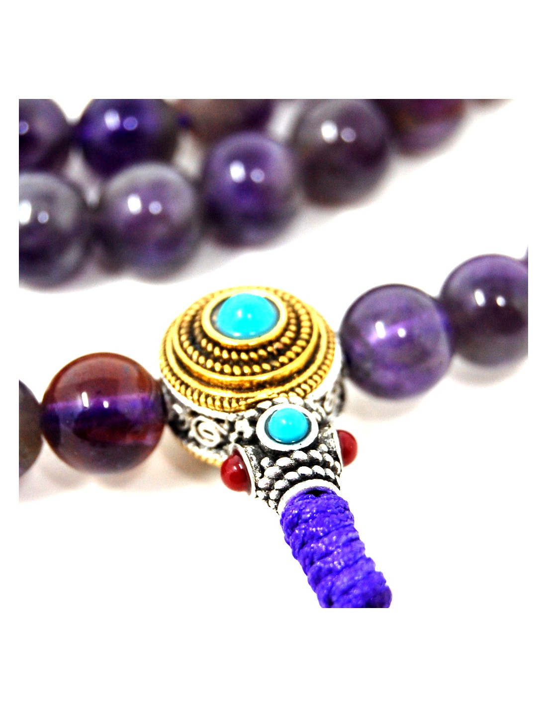 Japamala de amatista con cierre "princess" que permite ajustar la tensión de las cuentas.