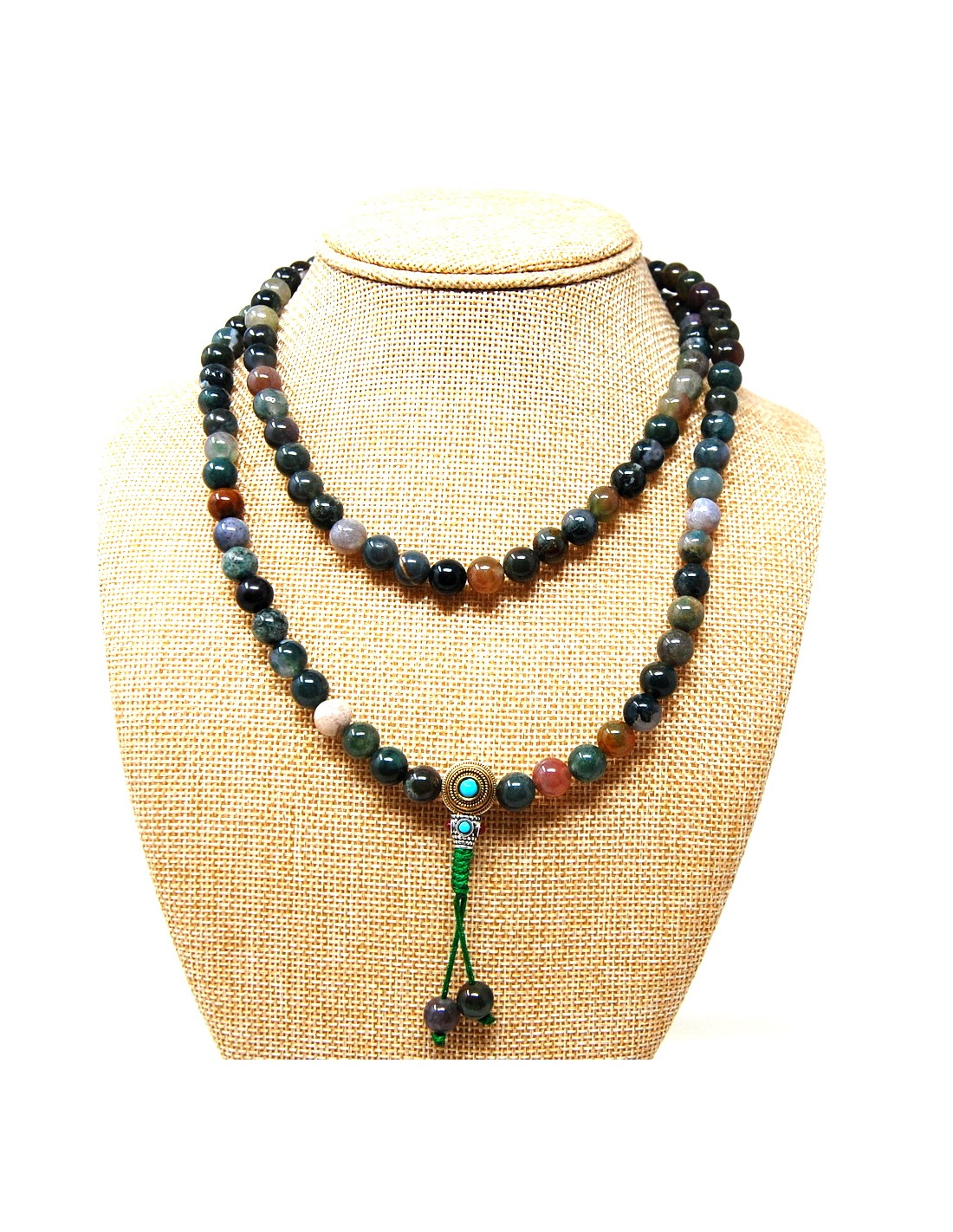 Japamala de ágata india con cierre "princess" que permite ajustar la tensión de las cuentas.
