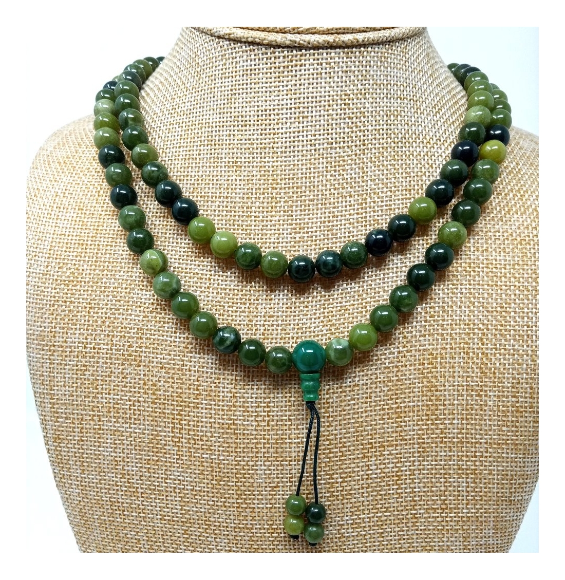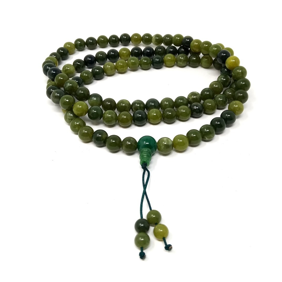 Japamala de 108 cuentas realizada en Jade de color verde oliva.