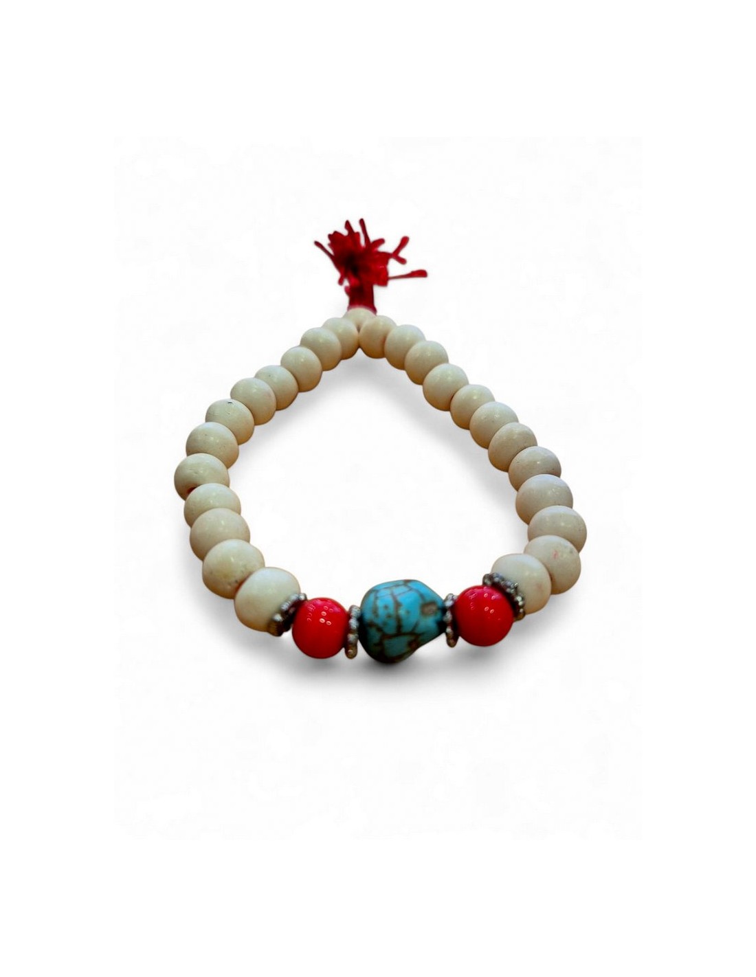 Japa de pulsera realizada con hueso natural y una turquesita intercalada.
