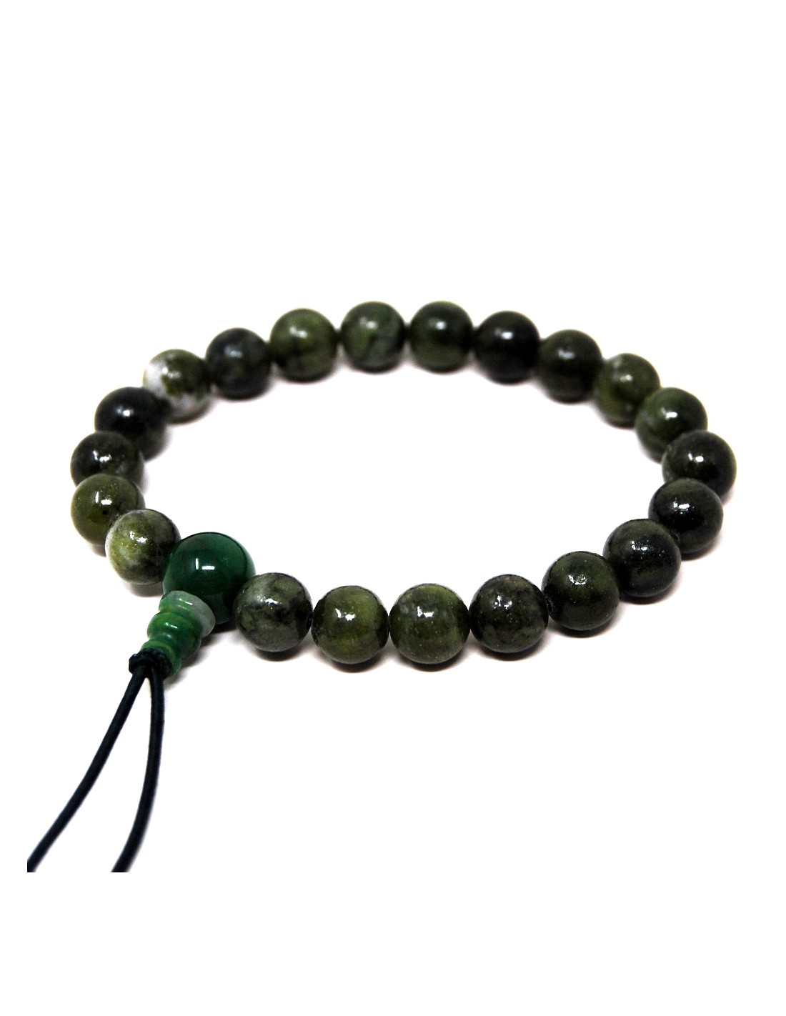 Pulsera elástica realizada en Jade verde.