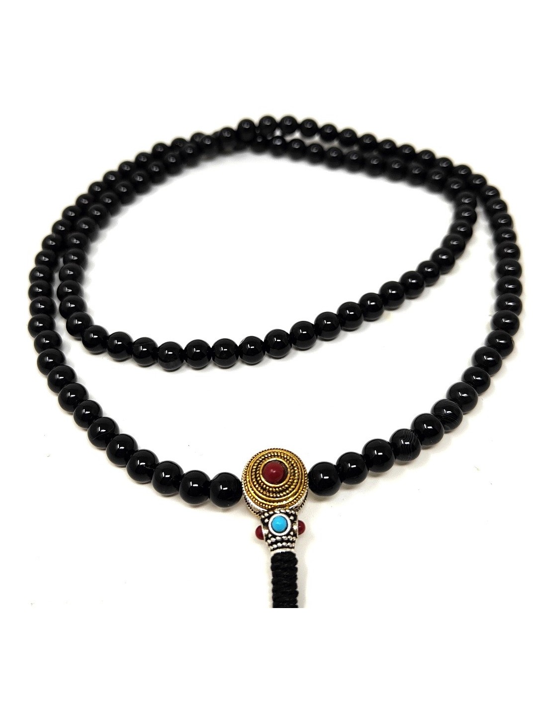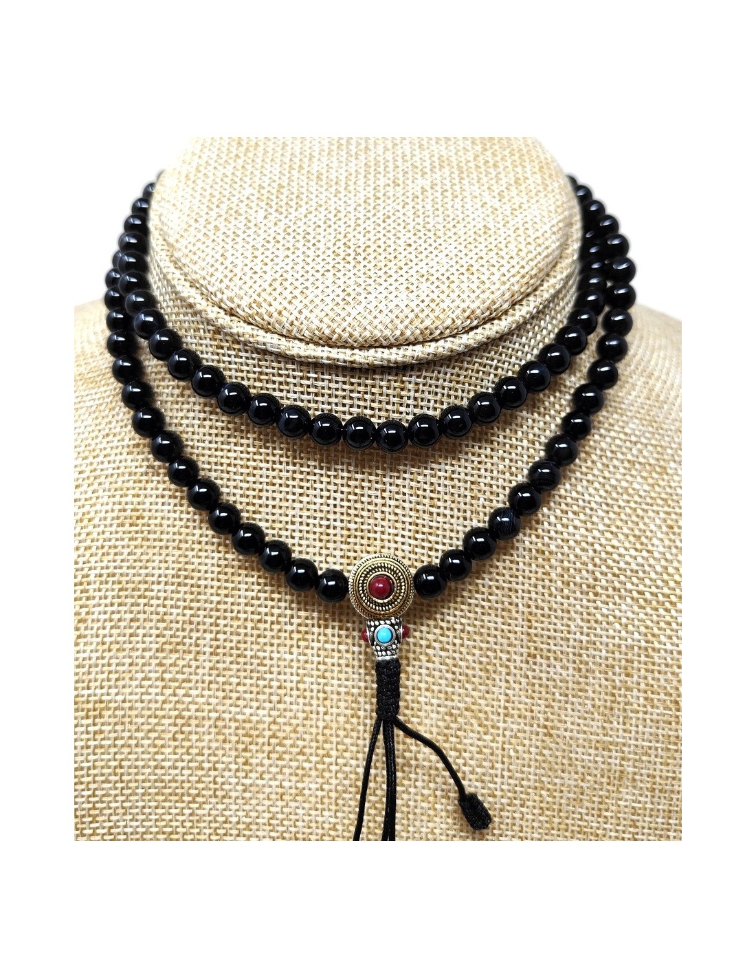 Japamala de 108 cuentas realizada con Onix y coronada con cierre tipo "princess" que permite ajustar la tensión de las cuentas.