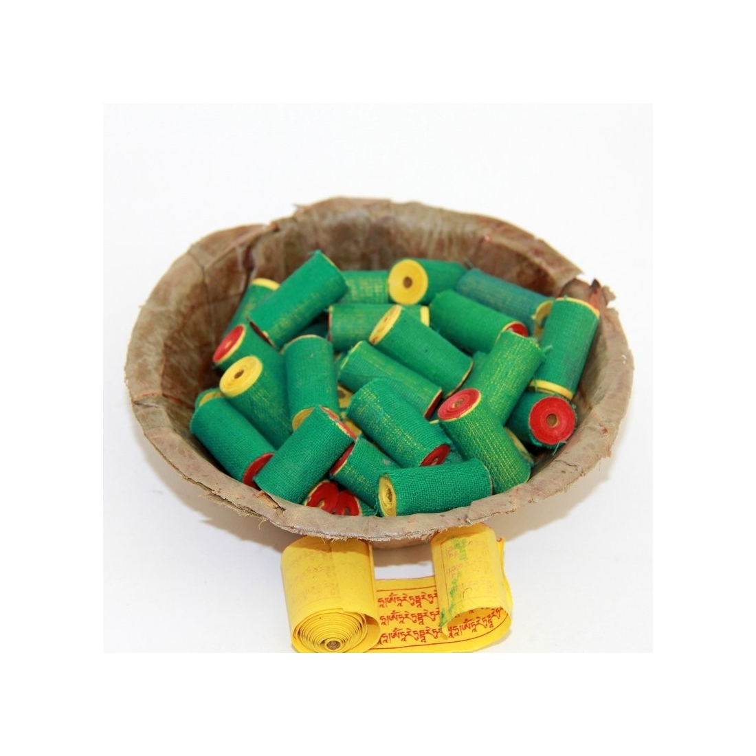 Rollo de papel sellado con tela con el mantra de Tara verde. Set de 20 unidades.