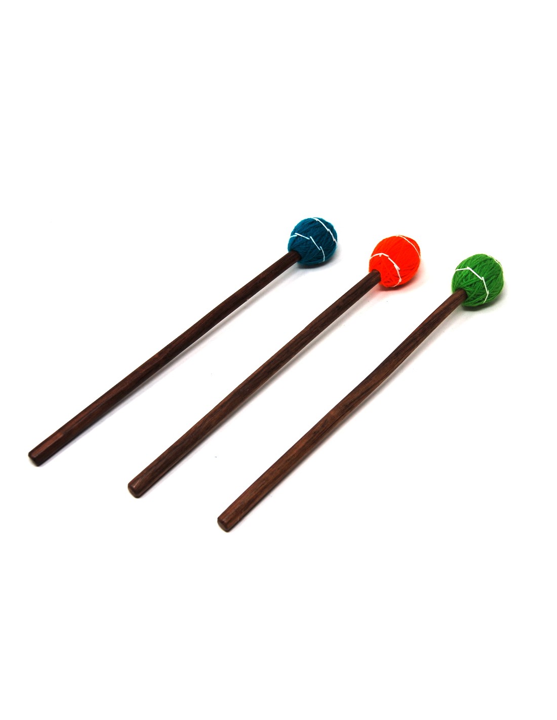 Maza realizada en madera y lana para obtener sonidos de media y alta frecuencia al golpear nuestro cuenco tibetano.
