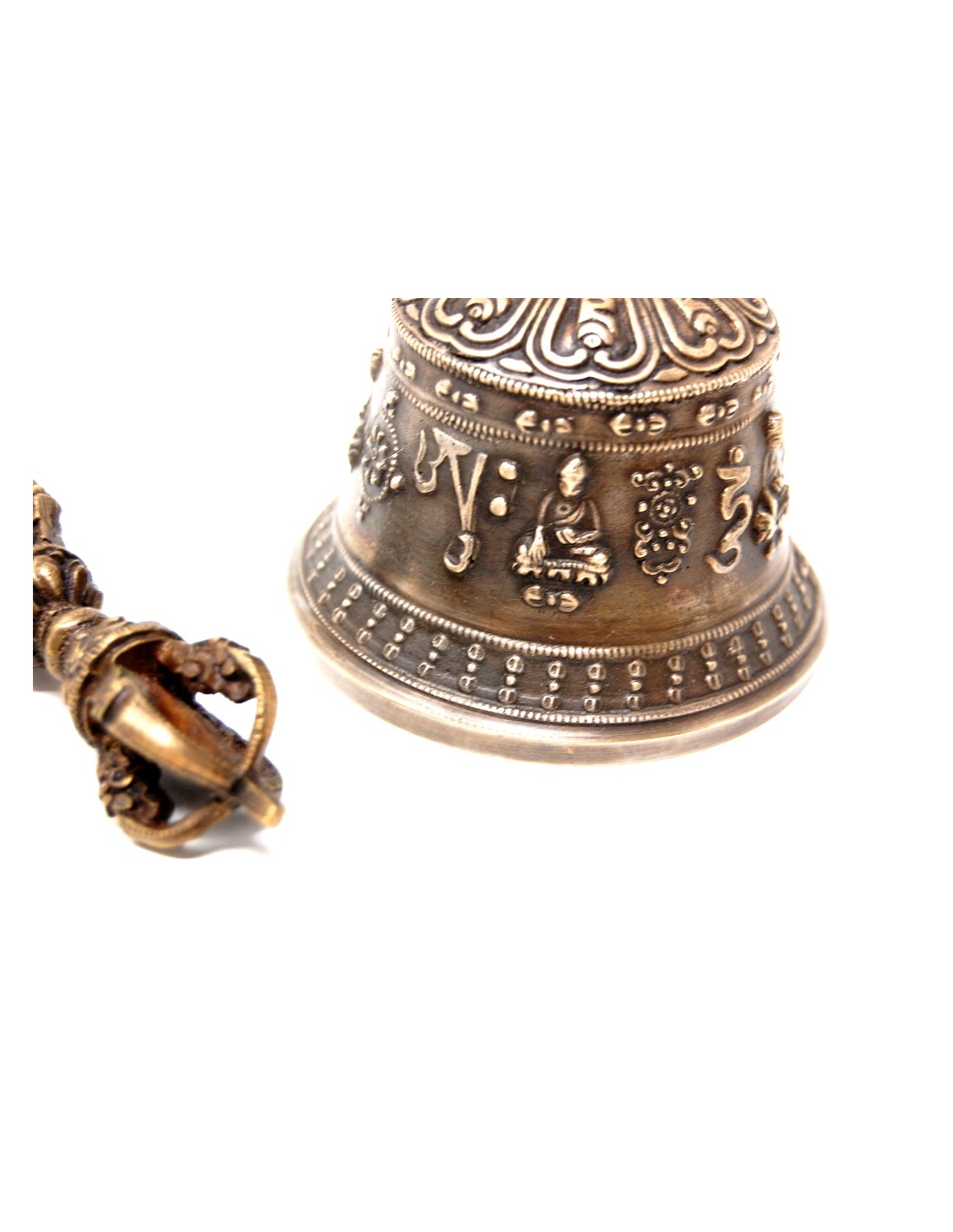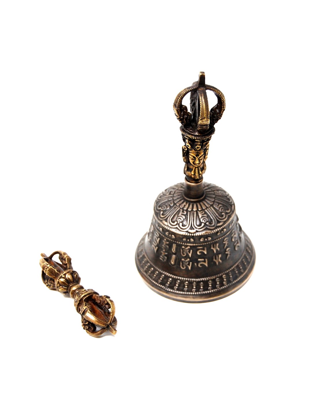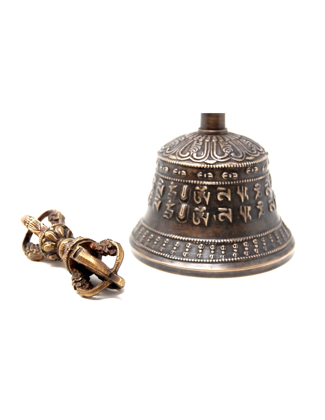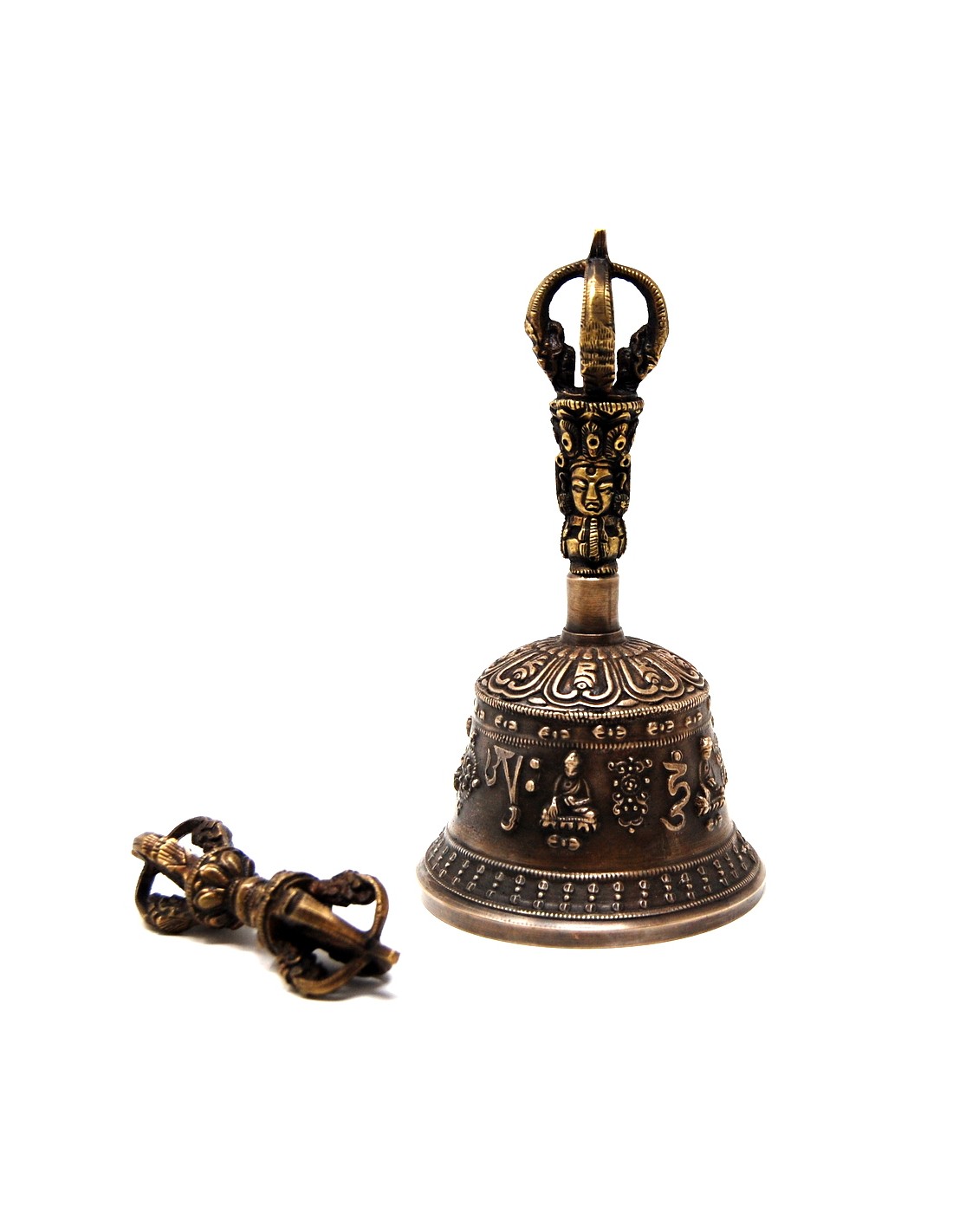 Campana tibetana de gran calidad sonora y riqueza de armónicos. Se acompaña de dorje y baqueta de madera y piel para tocarla por debajo. Diferentes diseños.