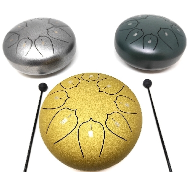 Hand drum que consta de 8 pestañas con 5 notas diferentes y las octavas de tres de ellas. Las pestañas están numeradas correspondiendo el número 1 a la nota Do, y así sucesivamente.