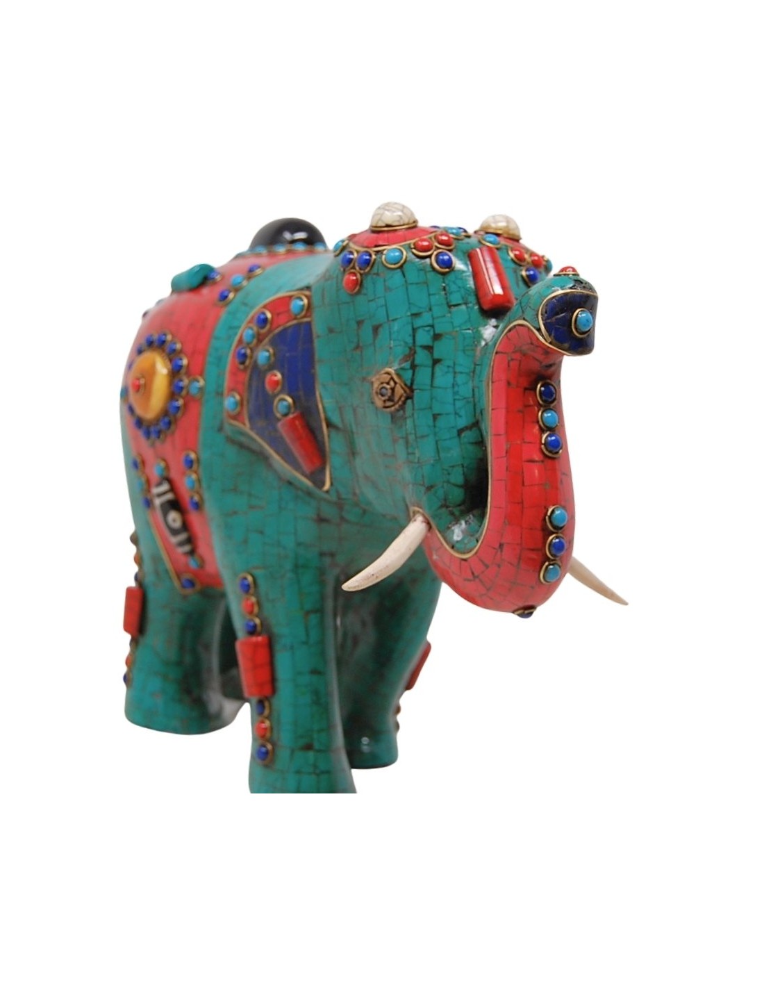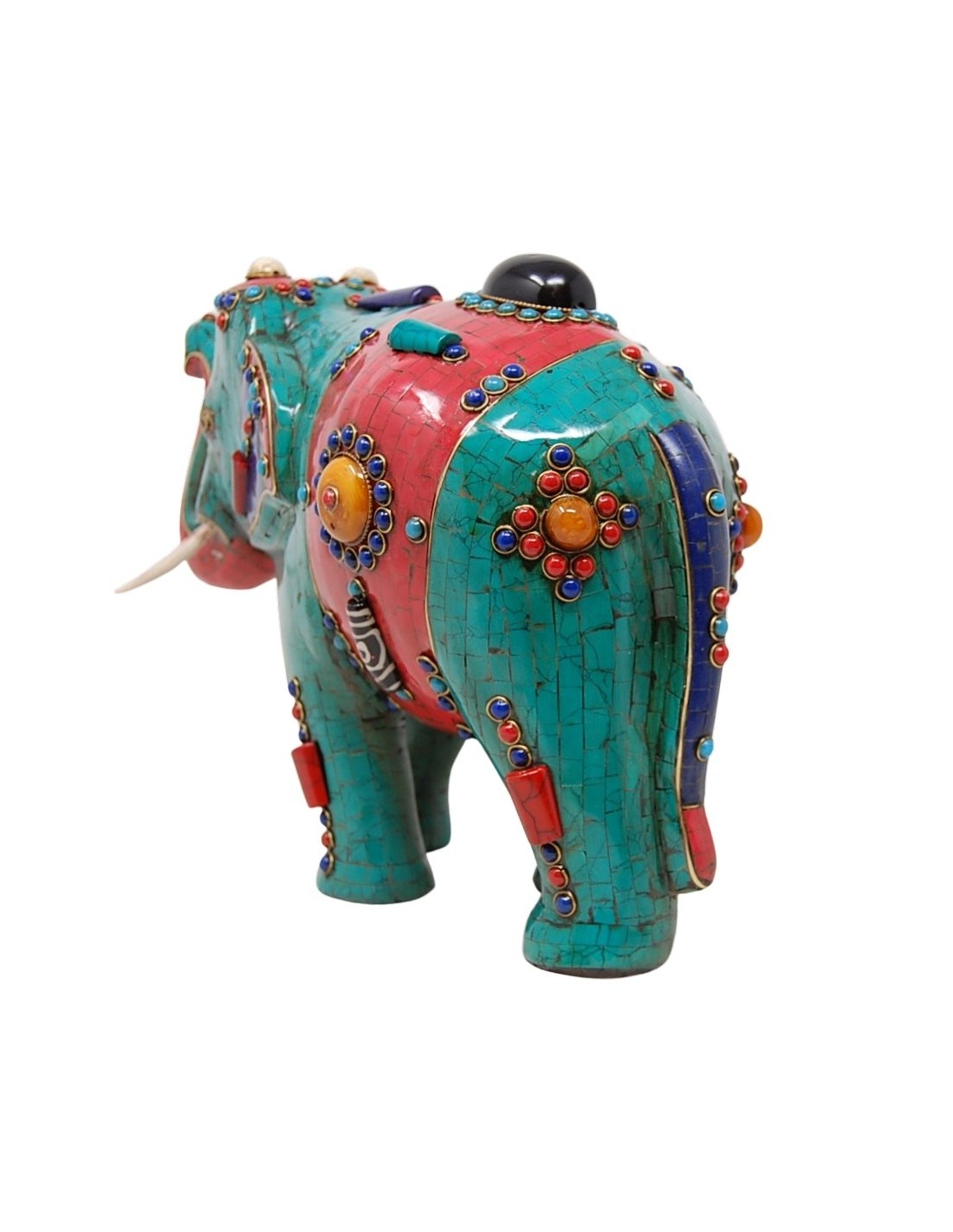 Precioso elefante cubierto completamente de un mosaico de pedrería. Pieza realizada a mano.