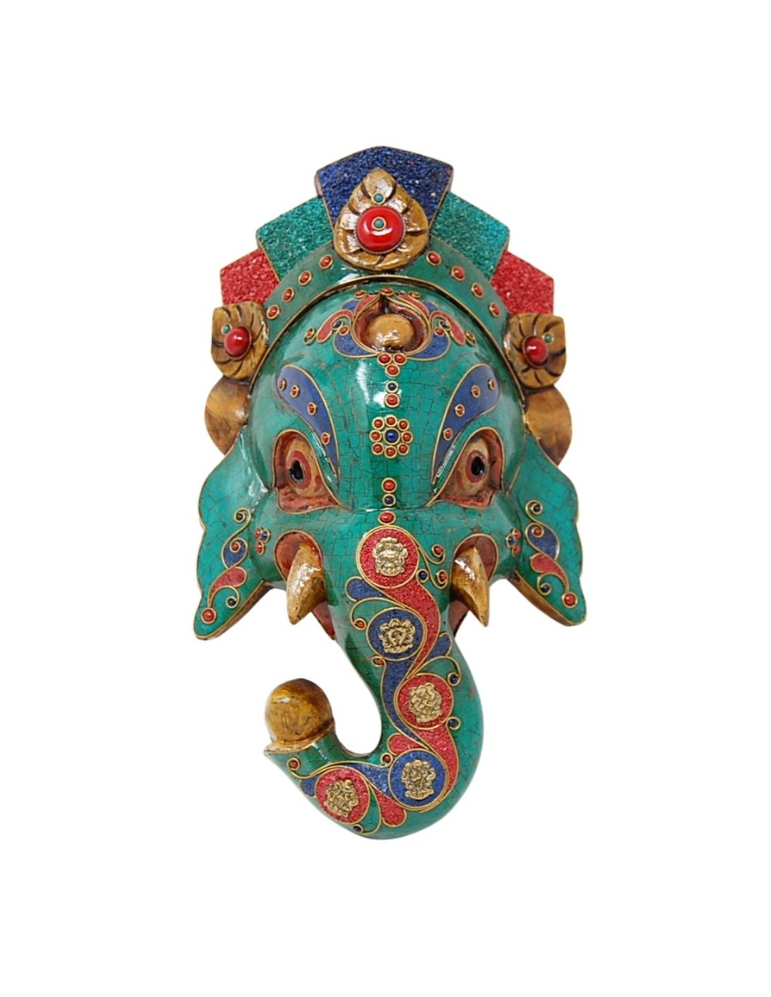 Preciosa imagen de Ganesh con pedrería en mosaico incrustada a mano