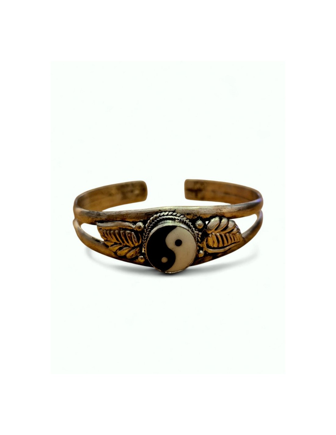 Pulsera de alpaca con el Yin Yang y un par de hojas a cada lado decorativas